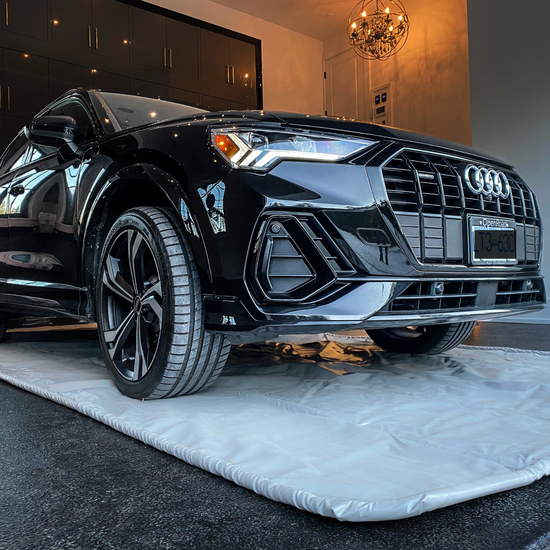 Shields your garage floor from snow, water, mud, and chemicals, preventing damage and mess.